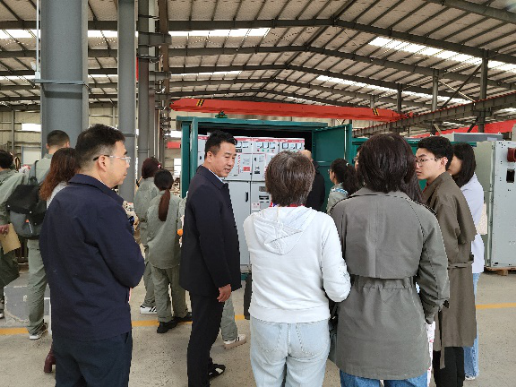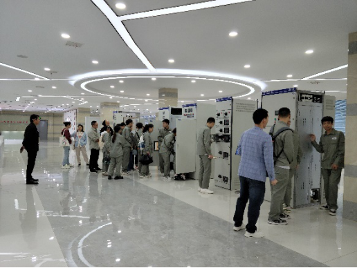 随后,老师和同学们参观了定制化电气产品:变压器、中压开关设备、低压成套开关设备、高压电容器等等。