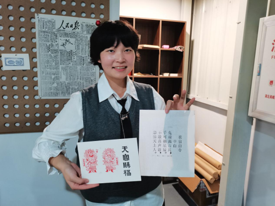 在“活字印刷”和“雕版印刷”两个非遗体验馆,同学们通过亲自“捡字”“排版”“上墨”“拓印”等步骤真实体验了印制古诗词、版画、报纸等过程。