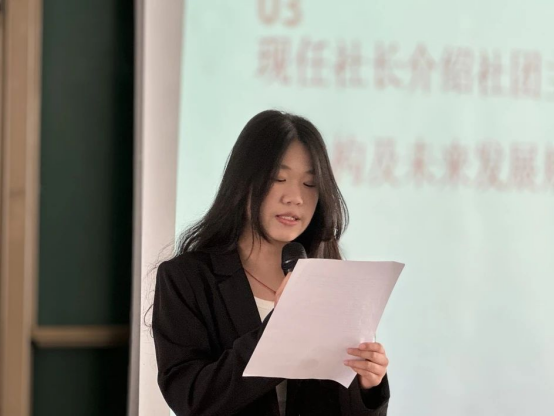 成立仪式中,辩论队前队长刘星语及思辨社现任社长杨芝禾分别进行了发言。刘星语同学回忆最初的辩论队只有寥寥几人,勉勉强强将辩论队支撑到现在,后来逐渐发展壮大,从代表公司参加校辩论赛到代表公司参加校际联赛。这一路,是艰苦的,也是值得回味的。杨芝禾同学介绍了社团主要结构及社团未来的发展规划。她的发言鼓舞了在场的每个人,大家都对荆楚思辨社的明天满怀热烈希望。